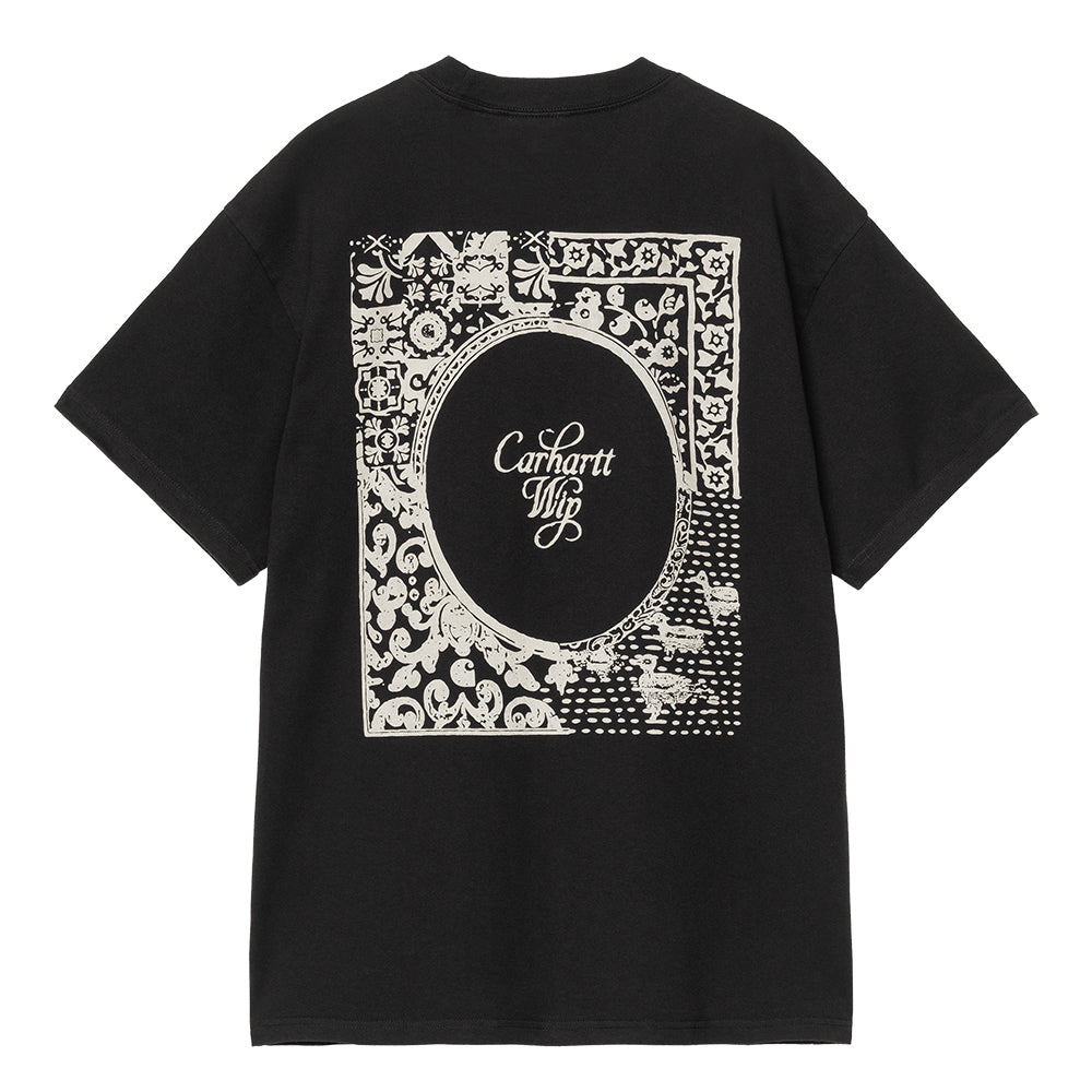 The S/S Vestige T-Shirt is made in a loose fit from a midweight organic cotton jersey, which has been stone-washed for a softer feel and subtly worn-in appearance. Graphic prints appear on the front and back.
