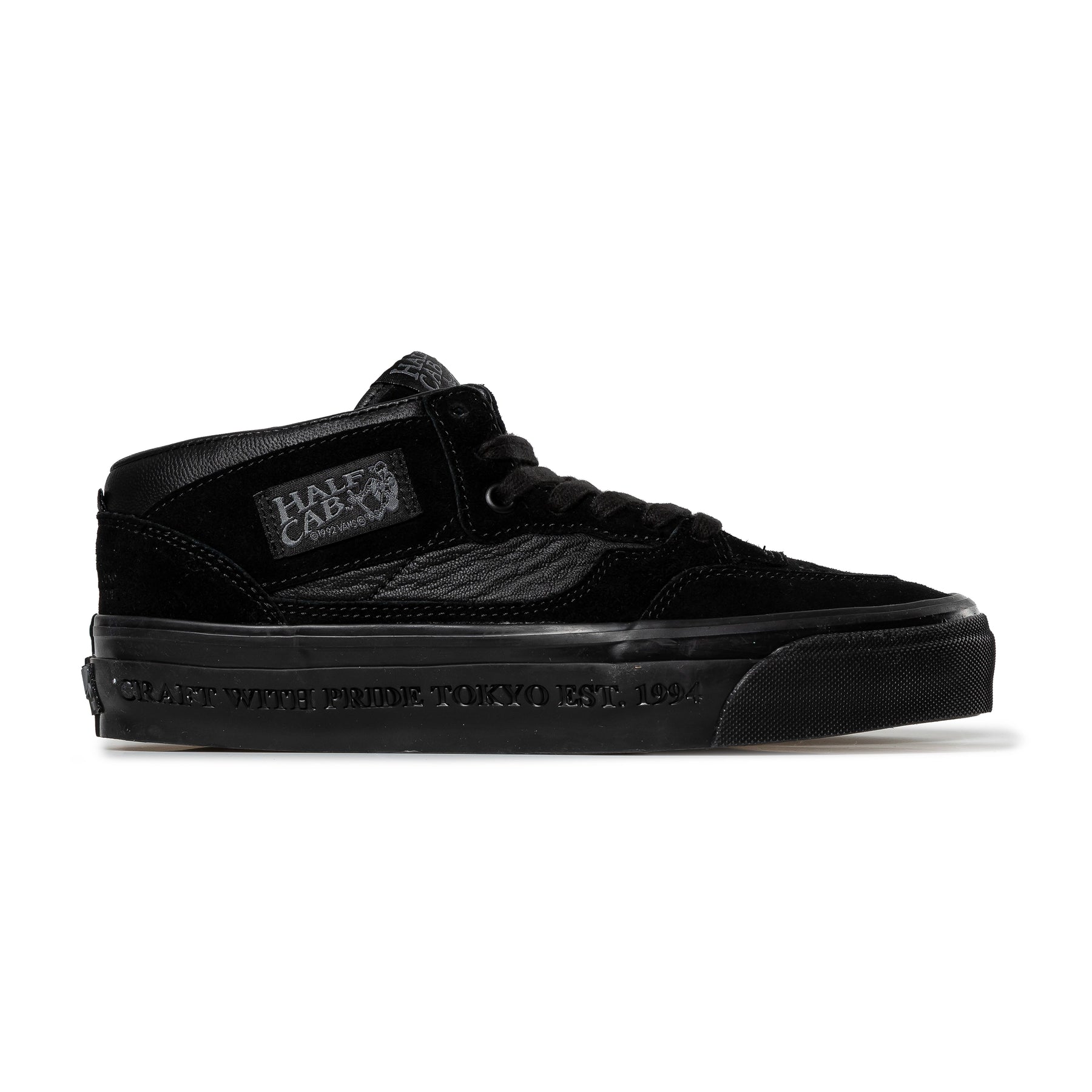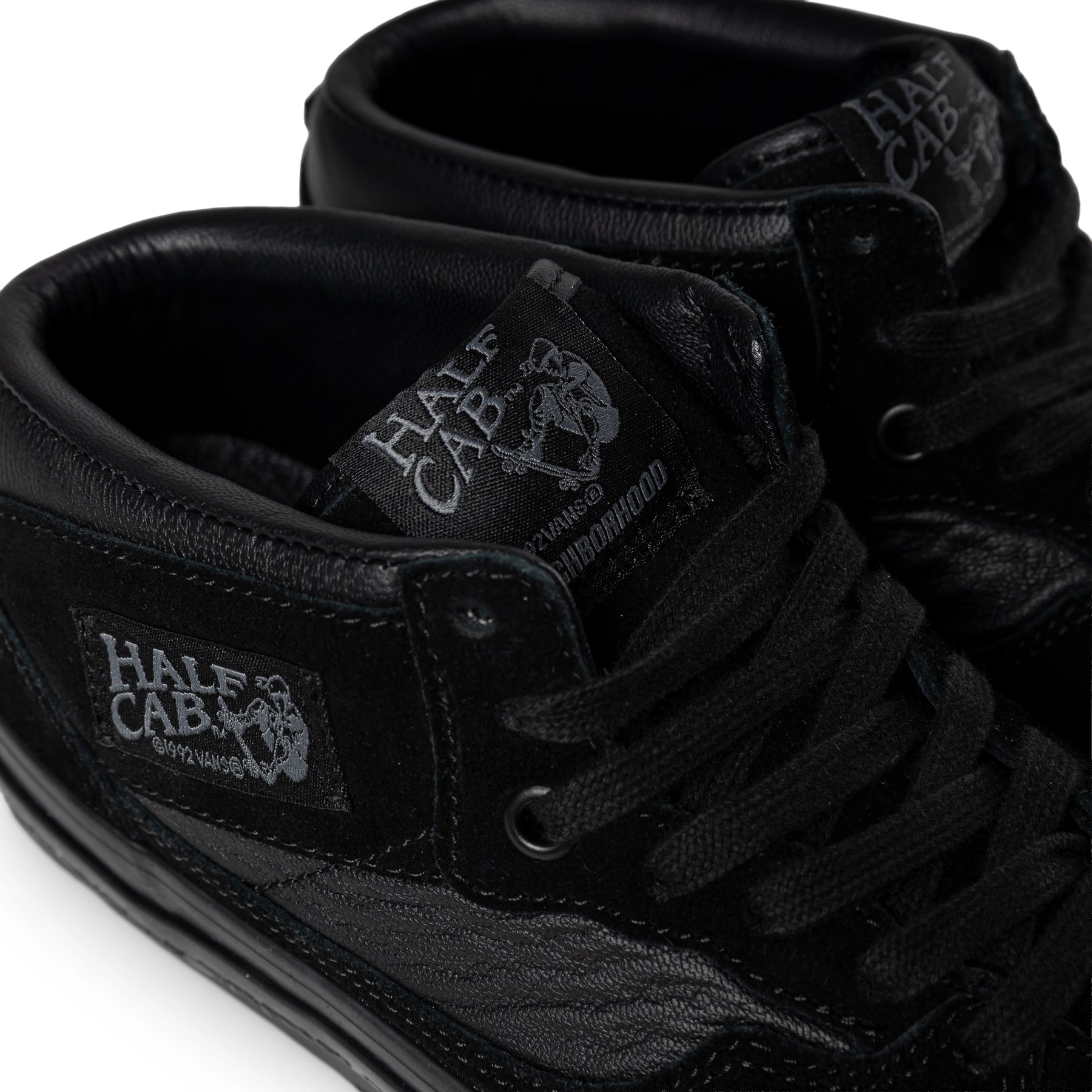 The OTW by Vans x NEIGHBORHOOD® Half Cab 33 is raw, restrained, and built with intent. Blacked-out suede and “Filth” and “Fury” toe embossing bring punk to a clean-lined signature. The lengendary mid-top stays true to its DIY roots while NEIGHBORHOOD’s Tokyo touches and comfort upgrades sharpen the ride.
