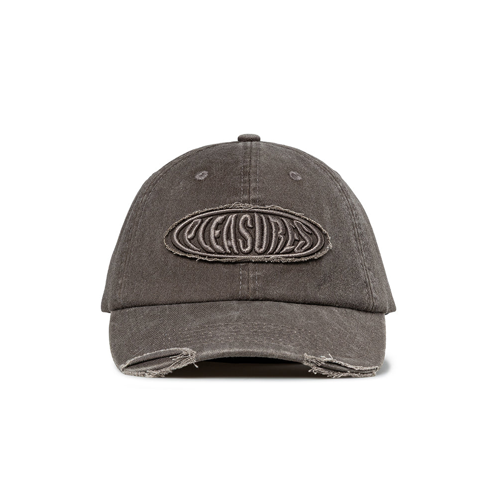 Pleasures Spring Summer 2026 Collection - Bubble Rip Cap- 100% Cotton- Embroidered PLEASURES logo- Adjustable buckle closure- Distressed wash- Style code: P26SP073-BN