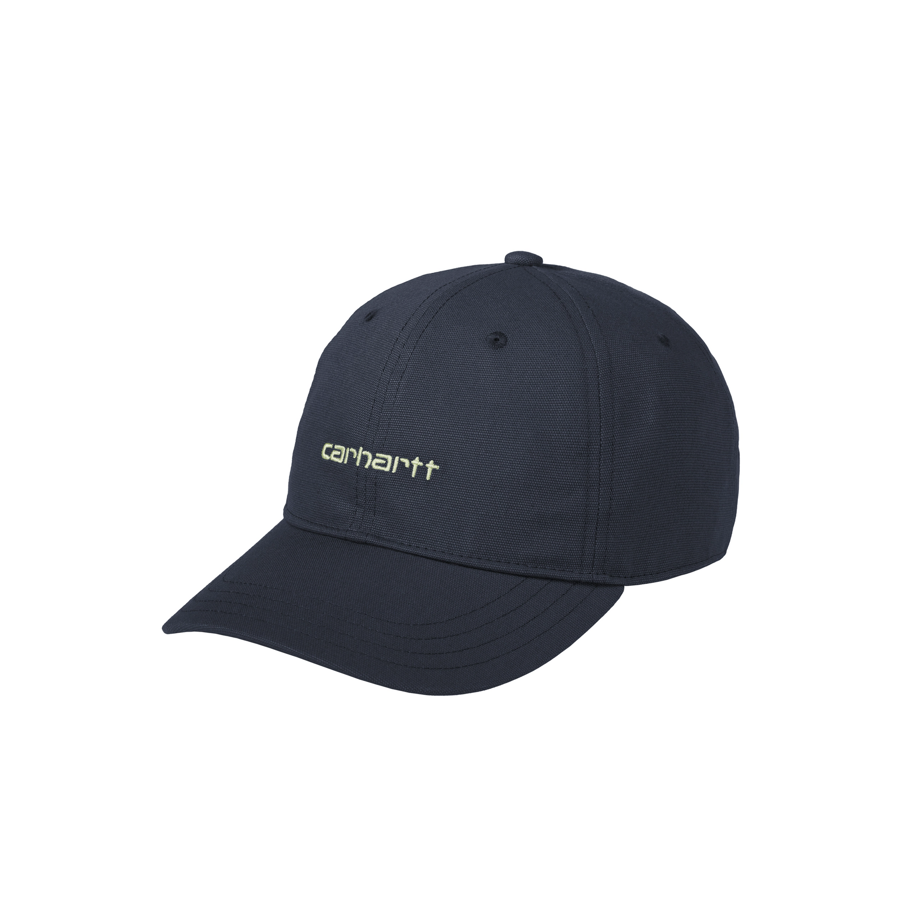 The Canvas Script Cap is an unstructured and unlined six panel style with a firm, curved peak. Made of cotton canvas, the cap has been garment-washed for softness. It is embroidered with the Carhartt WIP Script Logo on the front and features an adjustable strap to ensure a perfect fit.