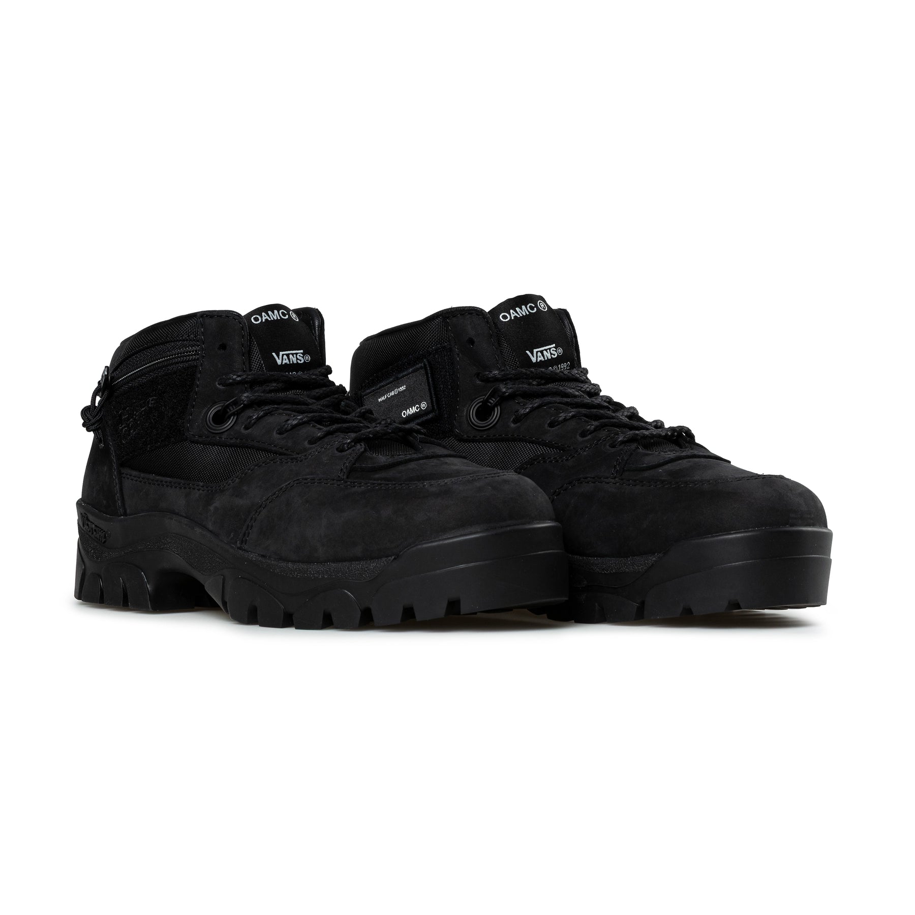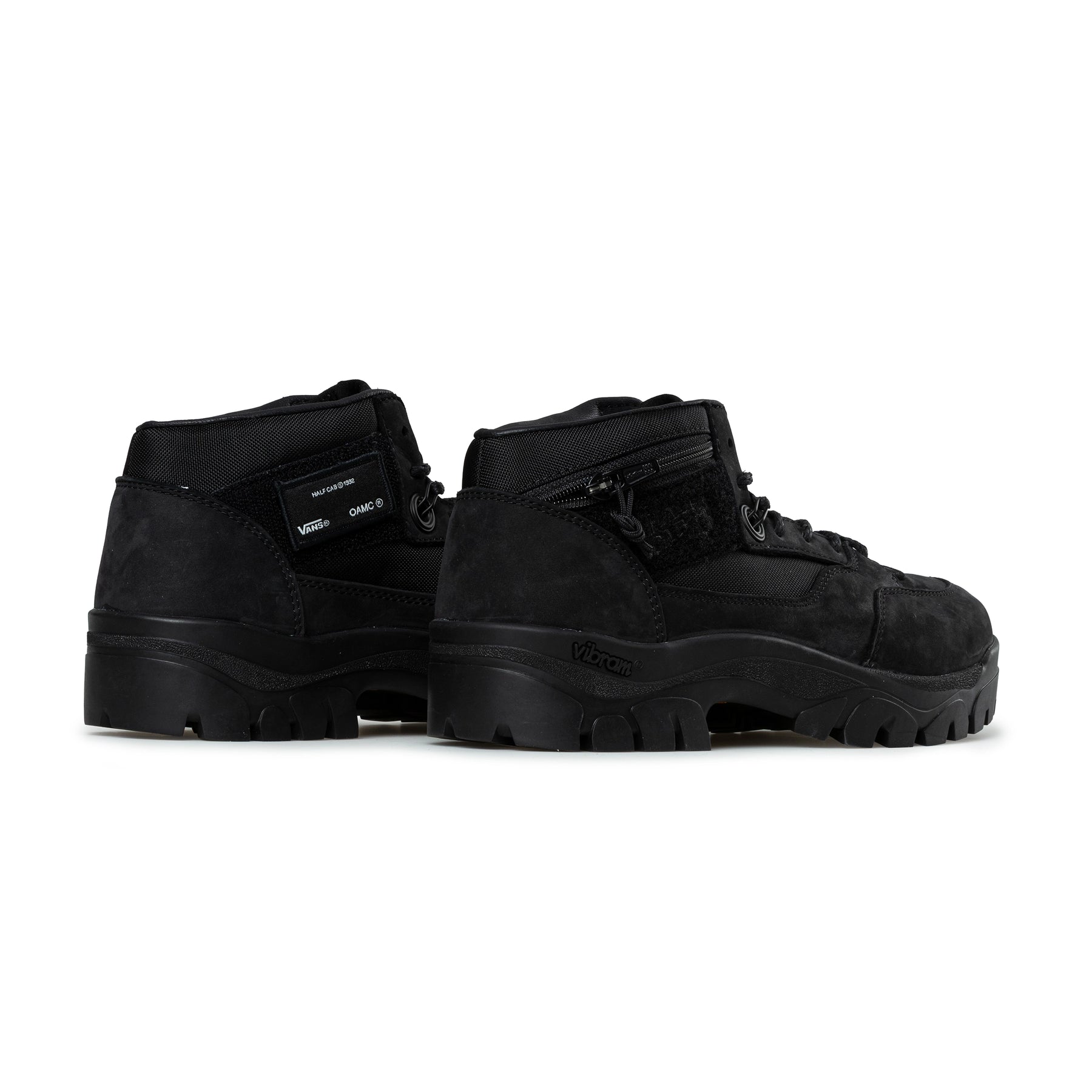 The OTW by Vans X OAMC Half Cab SP Boot reimagines a 1992 classic through a modern, rebellious lens, combining utilitarian function with uncompromising craftsmanship. The durable nubuck and ballistic nylon upper is paired with considered details, including an integrated zipper pouch with outer hook and loop panel with embroidered branding and removable archival patch, while co-branded touches underscore the collaboration. Underfoot, a cushioned insole and leather footbed provide all-day comfort, grounded by a Vibram outsole for confident traction across terrain. The silhouette reflects OAMC’s forward-thinking approach to materials, form, and cultural expression, crafted for those who value durability, purpose, and progressive design.