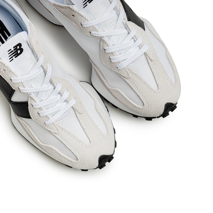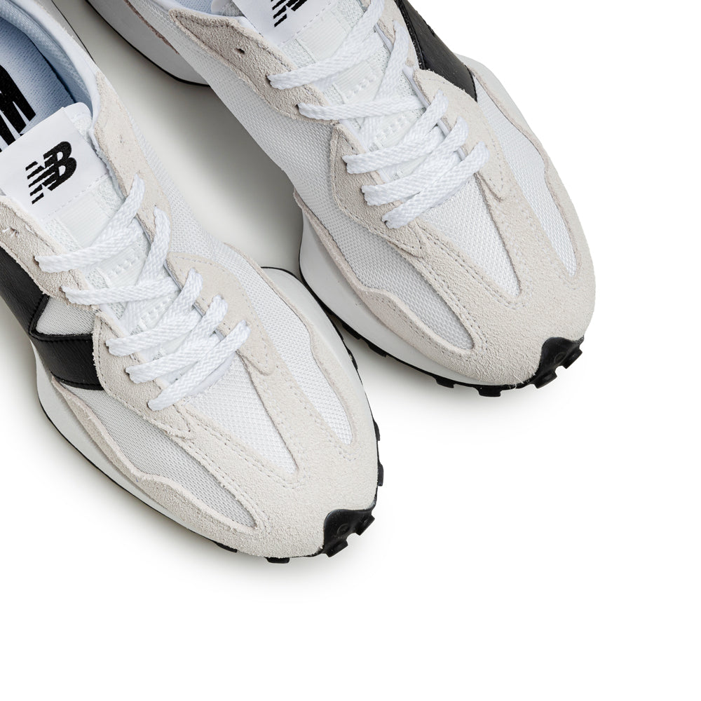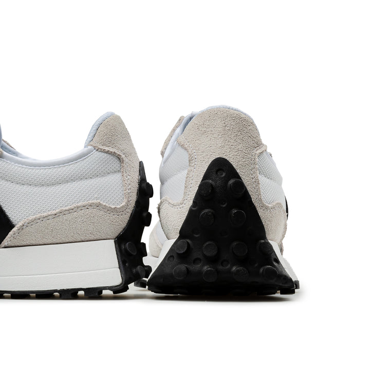 Inspiration from two ‘70s sneakers the SuperComp and the 355 . The 327 sheds new light on the ‘70s as a time of innovation by boldly reshaping classic design elements with a thoroughly contemporary outlook. With an angular reworking of the tried-and-true wedge silhouette, outsize, asymmetrically applied ‘N’ branding, and wraparound, trail-inspired lug outsole, the 327 provides nothing less than a complete reimagination of our running heritage.