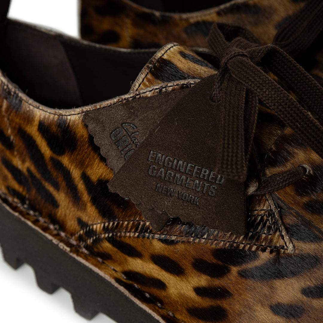 This is the second collaboration with New York-based brand Engineered Garments. This time, the limited edition is based on Clarks' masterpiece "Desert Khan". It combines different textures such as premium suede, smooth leather, and ponytail material to create a pair of shoes that injects Engineered Garments' utilitarian aesthetic. The removable quilted parts create a military feel, and the "uniform" element that is characteristic of EG is subtly present. The outsole is made of a tank sole made by Vibram®, which boasts high durability and grip. It achieves both practicality and style. The triangular key fob with the brand logo is also a detail that symbolizes the collaboration between the two companies.
